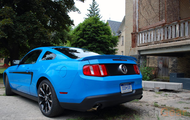 Dashboard and controls: Want to savor a 2011 Mustang interior in all its aluminum-accented, leather-lined, ambient-lit, Steve McQueen-cool-instrumentation glory? You’ll have to spring for a Premium version. Otherwise, you get a morose expanse of dashboard plastic, upholstery with the tactile richness of polyester, a controls rim suited for a delivery van, and bleak-looking gauges.